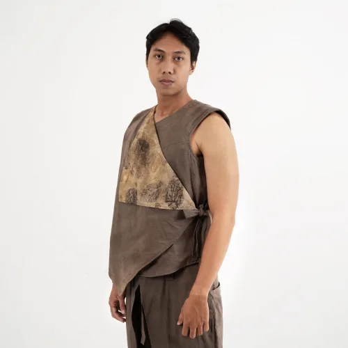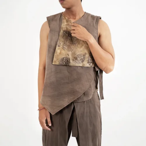 Earthy-toned trousers with natural dyes, creating an organic color palette and an effortless look. Designed with a relaxed silhouette and distinctive pleated details for comfort and a natural, modern look.